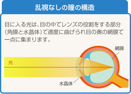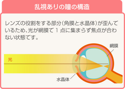 つまりどこにもピントが合わないのです。 そして近視(遠視)に乱視が加わると、さらに見えにくくなります。