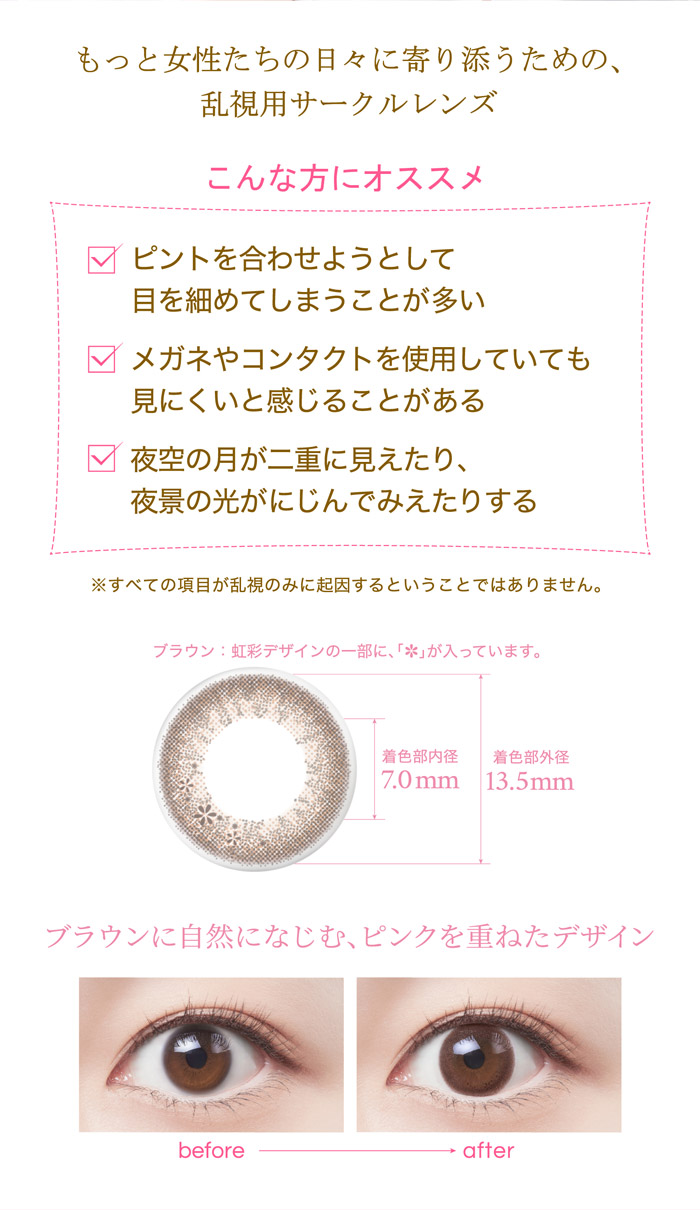| 乱視度数 | 円柱度数 -0.75、-1.25 |